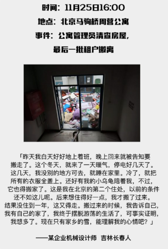 因为大兴的一场火灾事故,北京这个神奇的首都,开始了大规模的外来人口整治,拉开了在京漂泊和拼搏的打工一族的大迁移序幕!